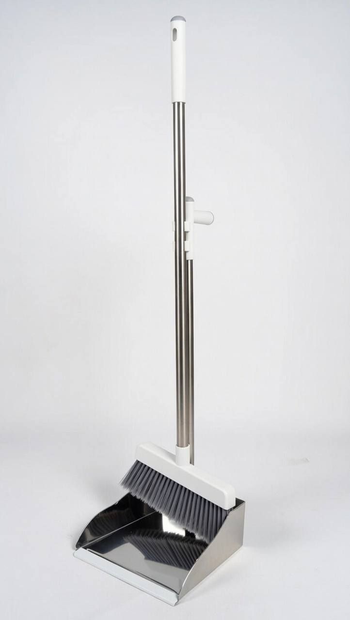 Совок з щіткою на довгій ручці з нержавіючої сталі 0032/lightgrey