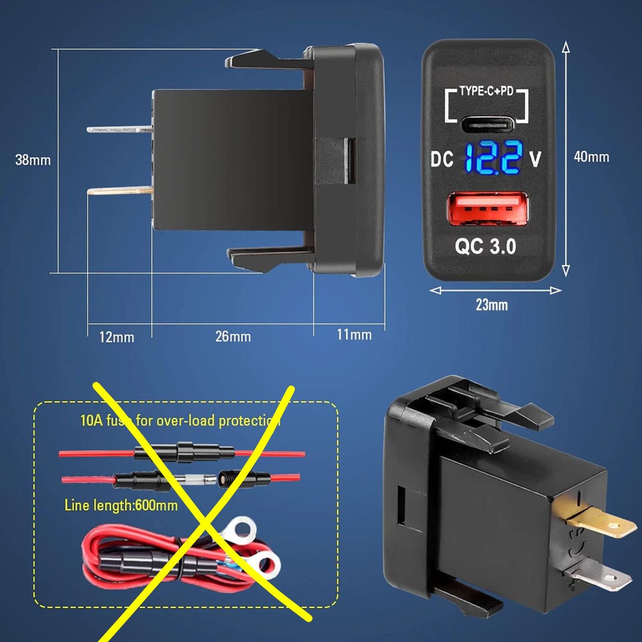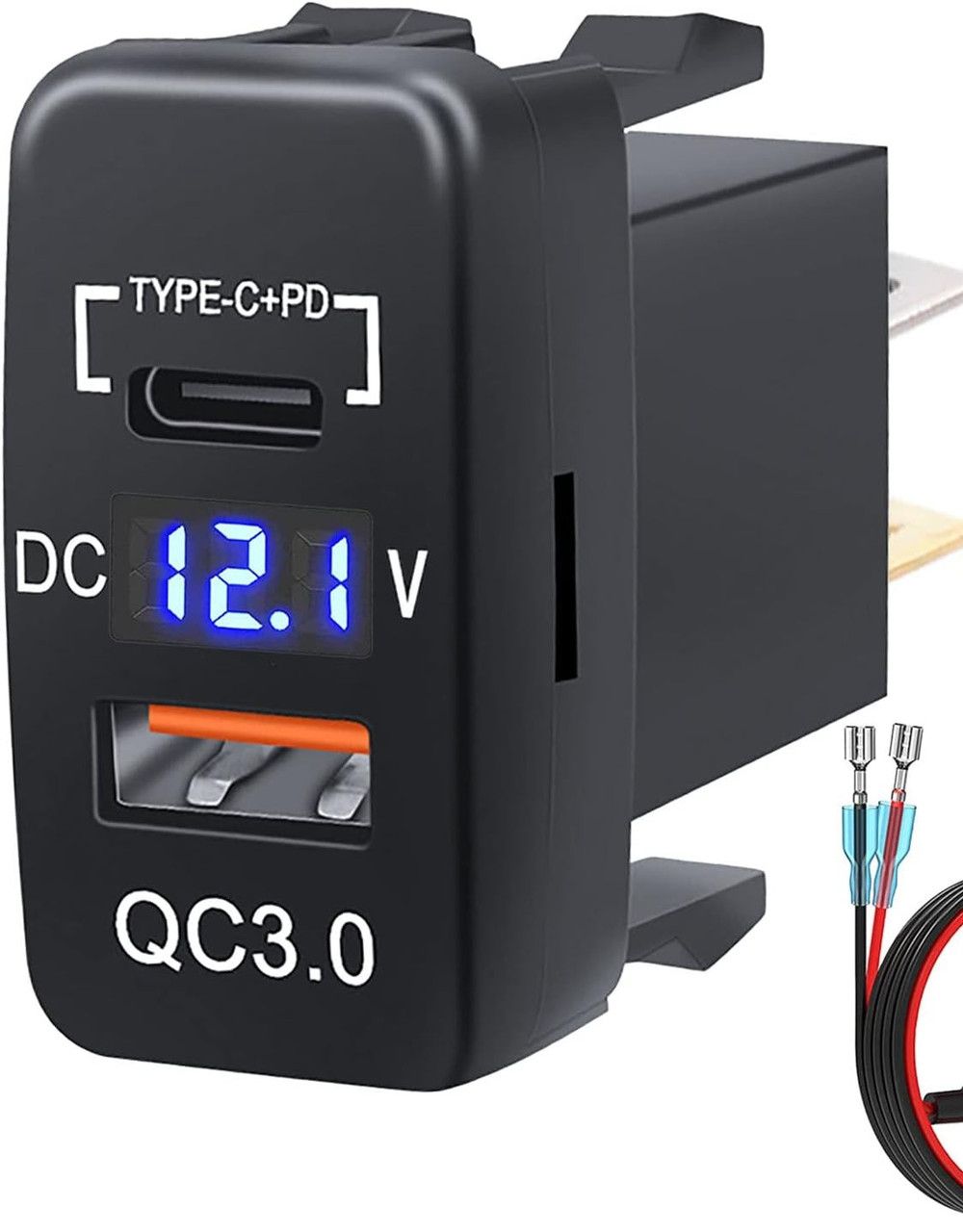 Автомобільний зарядний пристрій для смартфона. Годинник, планшет, пауербанк - любі гаджети, що в дорозі. Колір чорний. В салон автомобіля. Бажано використовувати із запобіжником та реле. Працює від акбайта 12 вольт. Дисплей, індикатор заряду акб. Має 1 USB QC 3.0 виходу. Та 1 вихід Type-C. Без кабелів. Вихід до 5 вольт та до 3 ампера. До 15 Ватт. Тип монтажу: корпус панелі. Вага: 34 грами. Розмір: 40×23×49 мм. Коробка пошти +10 грн.