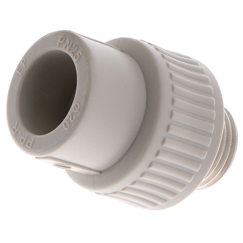 Робочий тиск - PN25 (25 атмосфер) Муфти поліпропіленові з наружнім різьбленням це поліпропіленовий фітінг, призначений для з`єднання поліпропіленових труб з іншими трубами, запірною арматурою. Застосовуються в системах холодного і гарячого водопостачання. Використовуються для опалення житлових, адміністративних, а також промислових будівель, при прокладці трубопроводів. Муфти універсальні, тобто підходять для всіх видів поліпропіленових труб від різних виробників, будь то композитні (армовані алюмінієвою фольгою), армовані скловолокном або неармовані Переваги з`єднувальних муфт • довговічність; • простота в монтажу; • надійне герметичне з`єднання • хімічна стійкість і стійкість до корозії; • можливість з`єднання з металевими елементами; • екологічно безпечні; • стійкість до зовнішнього впливу і перепадів температур, морозостійкість.