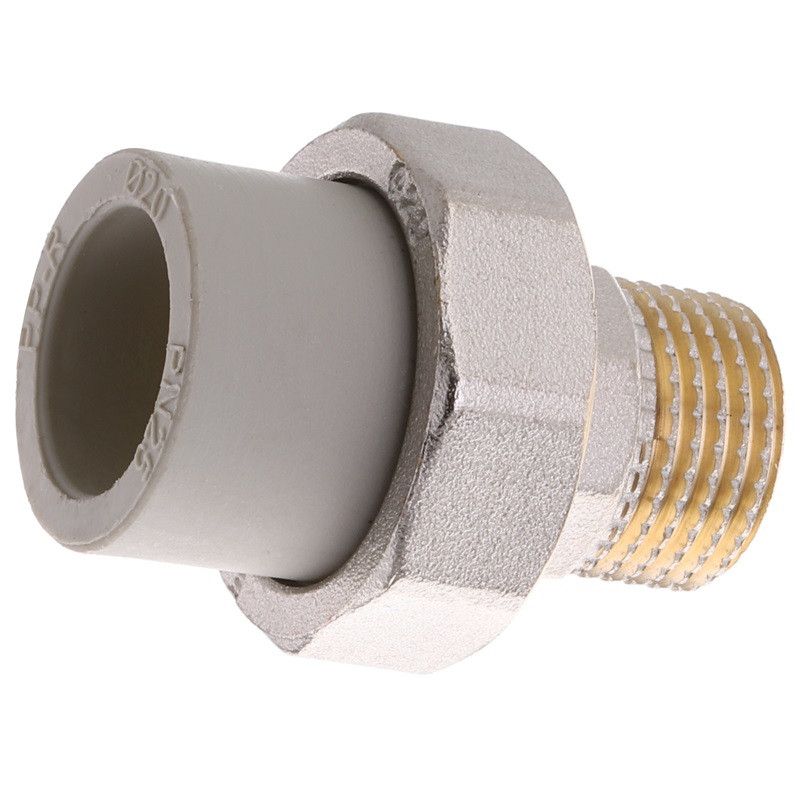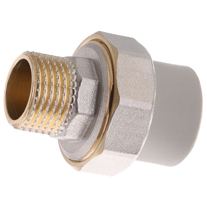 Робочий тиск - PN25 (25 атмосфер) Муфти розбірні поліпропіленові із зовнішнім різьбленням це поліпропіленові фітинги, призначені для з`єднання поліпропіленових труб з іншими трубами, запірною арматурою. Застосовуються в системах холодного і гарячого водопостачання. Використовуються для опалення житлових, адміністративних, а також промислових будівель, при прокладці трубопроводів. Розбірні муфти універсальні, тобто підходять для всіх видів поліпропіленових труб від різних виробників, будь то композитні (армовані алюмінієвою фольгою), армовані скловолокном або неармовані. Розбірна муфта поліпропіленова з зовнішньою різьбою Переваги розбірних муфт • довговічність; • простота в монтажу; • надійне герметичне з`єднання • хімічна стійкість і стійкість до корозії; • можливість з`єднання з металевими елементами; • екологічно безпечні; • стійкість до зовнішнього впливу і перепадів температур, морозостійкість.