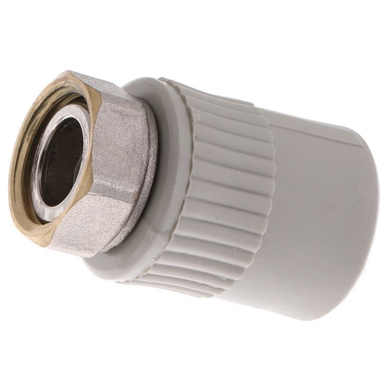 Робочий тиск - PN25 (25 атмосфер) Згони з накидною гайкою це поліпропіленові фітинги, призначені для з`єднання поліпропіленових труб з іншими трубами, запірною арматурою. Застосовуються в системах холодного і гарячого водопостачання. Використовуються для опалення житлових, адміністративних, а також промислових будівель, при прокладці трубопроводів. Згони універсальні, тобто підходять для всіх видів поліпропіленових труб від різних виробників, будь то композитні (армовані алюмінієвою фольгою), армовані скловолокном або неармовані. Зганяння внутрішнє різьблення з накидною гайкою Переваги розбірних сгонов • довговічність; • простота в монтажу; • надійне герметичне з`єднання • хімічна стійкість і стійкість до корозії; • можливість з`єднання з металевими елементами; • екологічно безпечні; • стійкість до зовнішнього впливу і перепадів температур, морозостійкість.