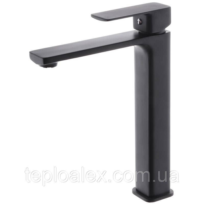 Високий чорний змішувач для умивальника Kubus high black
