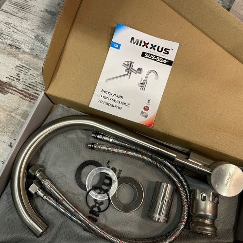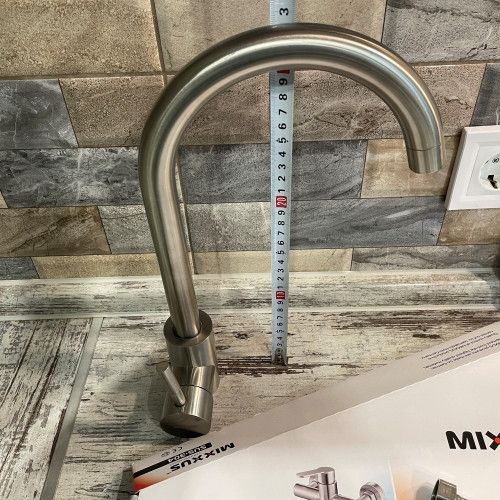 Змішувач MIXXUS нержавіюча сталь для кухні на мийку високий матовий кран