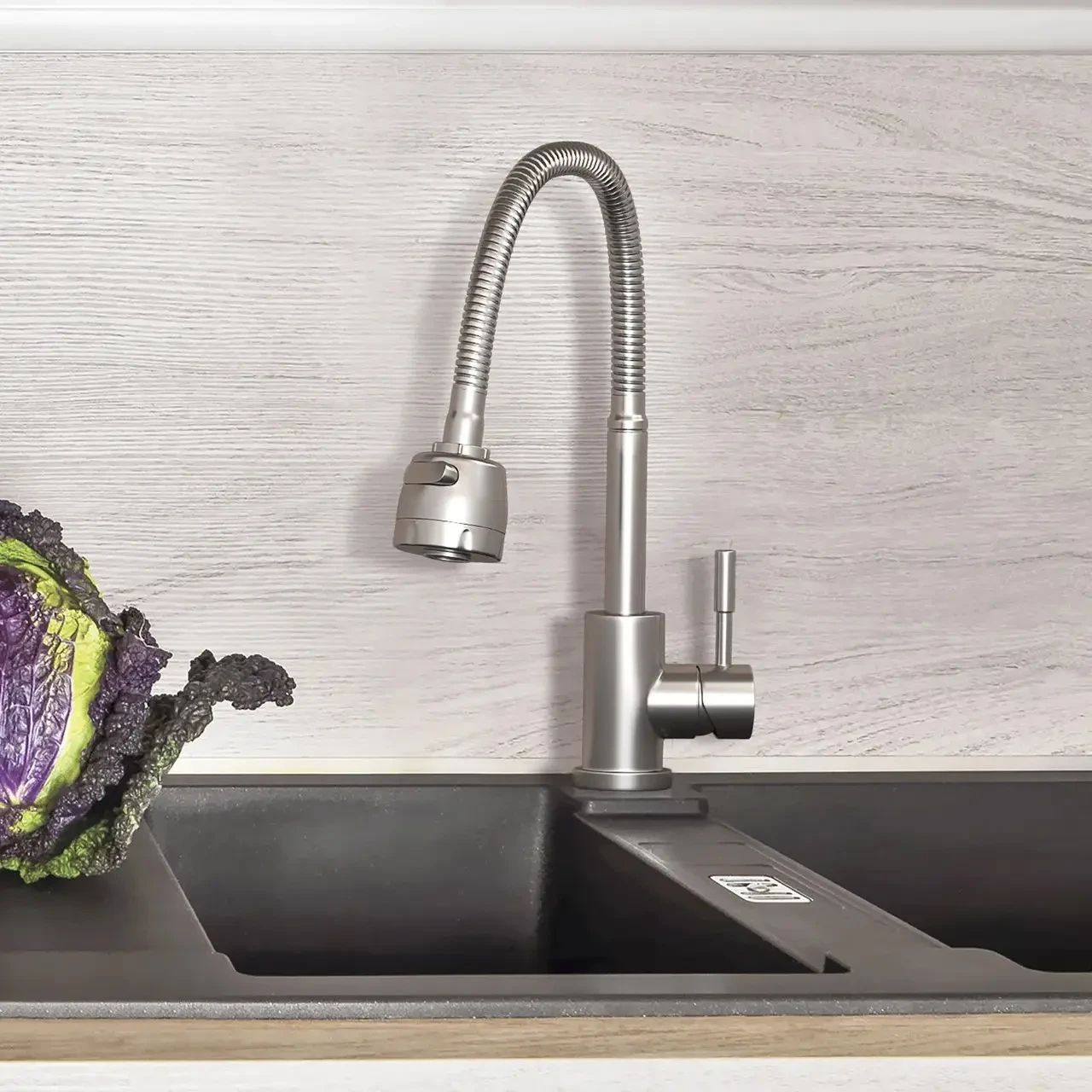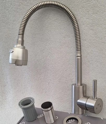 Змішувач Haiba для кухні нержавійка з гнучким рефлекторним виливом гусаком з перемикачем режимів на економ