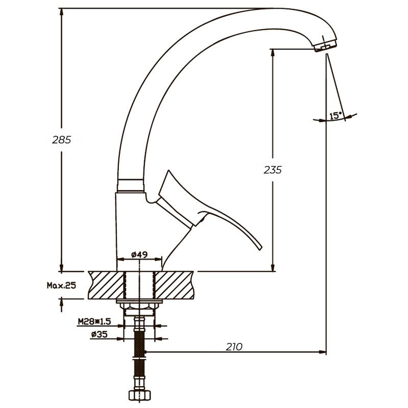 Змішувач для кухні Переваги моделі змішувача: -Корпус моделей виготовлений з якісного металу -Довговічність і безвідмовність в експлуатації -Елегантність форм, міцність і надійність -Висока функціональність -Використання якісних екологічно чистих матеріалів -Інноваційні технології виробництва -Кріплення змішувача гайкою