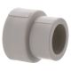 Робочий тиск - PN25 (25 атмосфер) Муфти поліпропіленові редукційні це поліпропіленові фітинги, призначені для прямого з`єднання поліпропіленових труб різного діаметру. Застосовуються в системах холодного і гарячого водопостачання. Використовуються для опалення житлових, адміністративних, а також промислових будівель, при прокладці трубопроводів. Муфти універсальні, тобто підходять для зварювання всіх видів поліпропіленових труб від різних виробників, будь то композитні (армовані алюмінієвою фольгою), армовані скловолокном або неармовані. Муфта поліпропіленова редукційна Переваги редукційних муфт • довговічність; • простота в монтажу; • надійне герметичне з`єднання • хімічна стійкість і стійкість до корозії; • можливість з`єднання з металевими елементами; • екологічно безпечні; • стійкість до зовнішнього впливу і перепадів температур, морозостійкість.