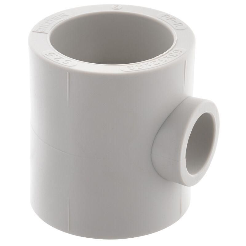 Робочий тиск - PN25 (25 атмосфер) Трійники поліпропіленові редукційні це поліпропіленові фітинги, призначені для прямого і кутового з`єднання поліпропіленових труб різного діаметру. Застосовуються в системах холодного і гарячого водопостачання. Використовуються для опалення житлових, адміністративних, а також промислових будівель, при прокладці трубопроводів. Трійники універсальні, тобто підходять для зварювання всіх видів поліпропіленових труб від різних виробників, будь то композитні (армовані алюмінієвою фольгою), армовані скловолокном або неармовані. Трійник поліпропіленовий редукційний Переваги редукційних трійників • довговічність; • простота в монтажу; • надійне герметичне з`єднання • хімічна стійкість і стійкість до корозії; • можливість з`єднання з металевими елементами; • екологічно безпечні; • стійкість до зовнішнього впливу і перепадів температур, морозостійкість.