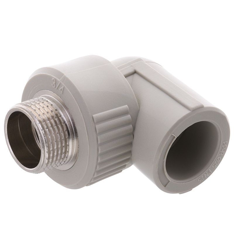 Робочий тиск - PN25 (25 атмосфер) Кути (коліна) поліпропіленові із зовнішнім різьбленням це поліпропіленові фітинги, призначені для з`єднання поліпропіленових труб з іншими трубами, запірною арматурою. Застосовуються в системах холодного і гарячого водопостачання. Використовуються для опалення житлових, адміністративних, а також промислових будівель, при прокладці трубопроводів. Кути універсальні, тобто підходять для всіх видів поліпропіленових труб від різних виробників, будь то композитні (армовані алюмінієвою фольгою), армовані скловолокном або неармовані. Кут поліпропіленовий з зовнішньою різьбою Переваги кутів (колін) • довговічність; • простота в монтажу; • надійне герметичне з`єднання • хімічна стійкість і стійкість до корозії; • можливість з`єднання з металевими елементами; • екологічно безпечні; • стійкість до зовнішнього впливу і перепадів температур, морозостійкість.