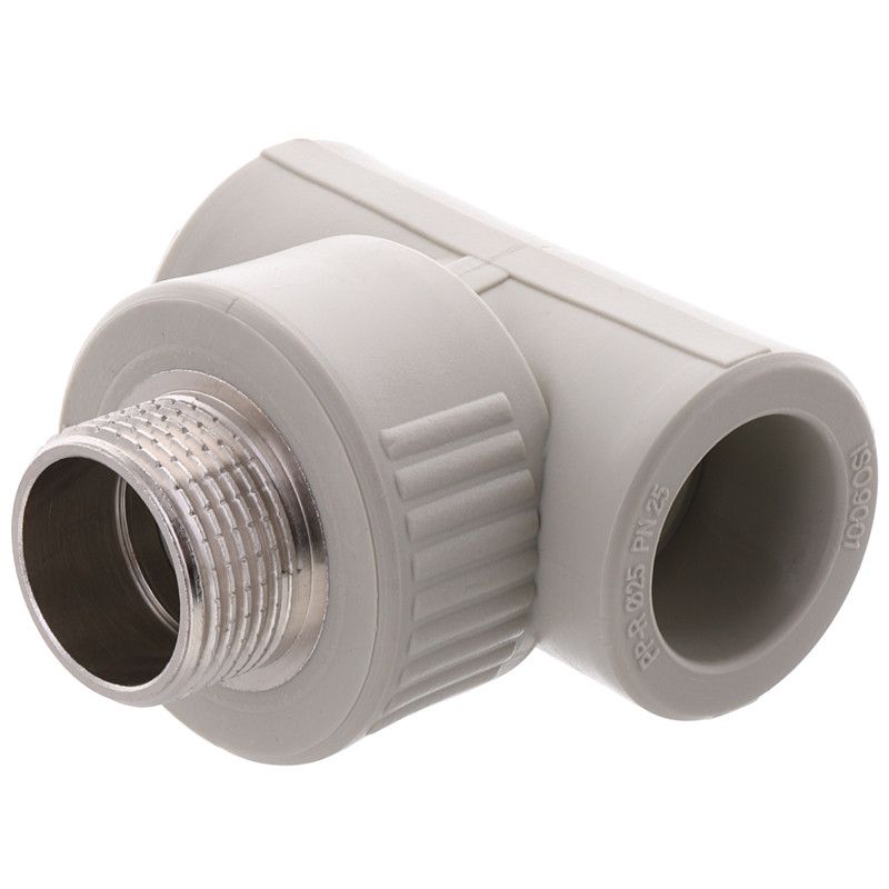 Робочий тиск - PN25 (25 атмосфер) Трійники поліпропіленові із зовнішнім різьбленням це поліпропіленові фітинги, призначені для прямого і кутового з`єднання поліпропіленових труб з іншими трубами, запірною арматурою. Застосовуються в системах холодного і гарячого водопостачання. Використовуються для опалення житлових, адміністративних, а також промислових будівель, при прокладці трубопроводів. Трійники універсальні, тобто підходять для всіх видів поліпропіленових труб від різних виробників, будь то композитні (армовані алюмінієвою фольгою), армовані скловолокном або неармовані. Трійник поліпропіленовий з зовнішньою різьбою Переваги трійників • довговічність; • простота в монтажу; • надійне герметичне з`єднання • хімічна стійкість і стійкість до корозії; • можливість з`єднання з металевими елементами; • екологічно безпечні; • стійкість до зовнішнього впливу і перепадів температур, морозостійкість.