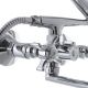 Двухручковий змішувач для ванни виготовлений з латуні категорії А. Має хромове покриття сталевого кольору і відполірований до дзеркального блиску. З технічних особливостей він виділяється зручним євро перемикачем, керамічними напівоборотними кран-буксами, а також 32 см поворотним виливом з вбудованим аератором Neoperl. Комплектація змішувача включає також 5-режимну лійку зі шлангом довжиною 1,5 метра, ексцентрики з декоративними чашками, тримач для лійки, гумові прокладки і аератор. Закріплюється змішувач на вмонтованих в стіну трубах на ексцентрики. При отриманні обов'язково перевіряйте відповідність замовлення, повну комплектацію товару, а також його зовнішній вигляд. У разі пошкодження товару, або неповної комплектації замовлення звертайтесь до нас по телефону для оперативного вирішення питання.