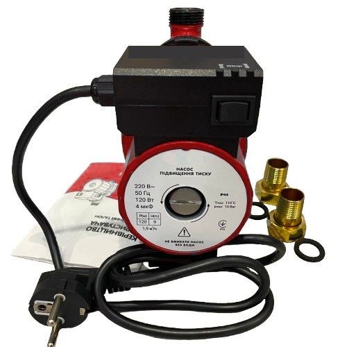 Насос з захистом від сухого ходу. Насос для підвищення тиску на 9 метрів призначена для підвищення тиску води як у централізованих системах водопостачання, так і індивідуальних (колодці, резервуари з водою) Найчастіше в літній період коли активно починається сезон поливання садів і городів, у зв'язку з цим тиск у системі водопроводу падає, до критичних показань. Низький тиск у системі несприятливо позначається на роботі побутових приладів, таких як: газова колонка, пральна машина, бойлер, фільтр тонкого очищення, посудомийна машина. Так само не коректно працюють системи поливання. Розв'язати цю проблему просто-купити насос для підвищення тиску води. Але потрібно врахувати, що звичайний насос для підвищення тиску розрахований на 1-2 споживачі (стиральна машина + подавання води в змішувач). Якщо ж ставиться завдання підвищення тиску у всьому будинку або квартирі, краще використовувати насосну станцію для підвищення тиску. Вона дасть велику продуктивність до 30 л/хв і до 3,5 атм тиску. Чого буде достатньо для побутових приладів і навіть системи поливання! Насос для підвищення тиску - стане ефективним рішенням низького тиску води у Вашій квартирі, приватному будинку, заміському будинку. Встановивши насос підвищення тиску води, Ви забудете про незручності і про поганий напір води. Ця модель спроектована так, що гідравлічна система видає мінімум шуму. Найчастіше в централізованій системі водопроводу дуже низький тиск, для коректної роботи побутових приладів (газова колонка, пральна машина, посудомийна машина, фільтри тонкого очищення) за допомогою насоса для підвищення тиску можна легко усунути цю проблему! Також такі насоси застосовуються для подачі води під тиском з ємності для тих же побутових приладів. Насос для підвищення тиску води укомплектований розбірними з'єднаннями діаметра 1/2 дюйма, що дає можливість легкого монтажу та демонтажу для обслуговування насоса. Рекомендується встановити фільтр грубої очистки перед насосом, це продовжить термін служби насоса. Завдяки використанню високоякісних матеріалів та скрупульозному складанню насос практично безшумний та довговічний. ПЕРЕВАГИ: висока надійність конструкції та тривалий термін служби (застосування зносостійких керамічних підшипників та відсутність торцевих ущільнень); низький рівень шуму в порівнянні зі звичайними насосами (у конструкції насоса з «мокрим» ротором шум підшипників ефективно знижується рідиною, що перекачується); простота монтажу та експлуатації; два режими роботи – автоматичний (увімкнення електронасоса під час відкриття крана) та ручний (постійна подача води електронасосом). корпус насосної має катафорезне покриття проточної частини, що підвищує її корозійну стійкість. Технічні характеристики: Потужність 120 Вт Максимальна об'ємна подача: 1,56 м ³ / год (26 л / хв) Максимальний напір: 9 м Довжина кабелю живлення 1 м Монтажні гайки 1\2 дюйми Тип ротора – мокрий Обмотка мідь Установка насоса горизонтальна/вертикальна Матеріал корпусу - чавун