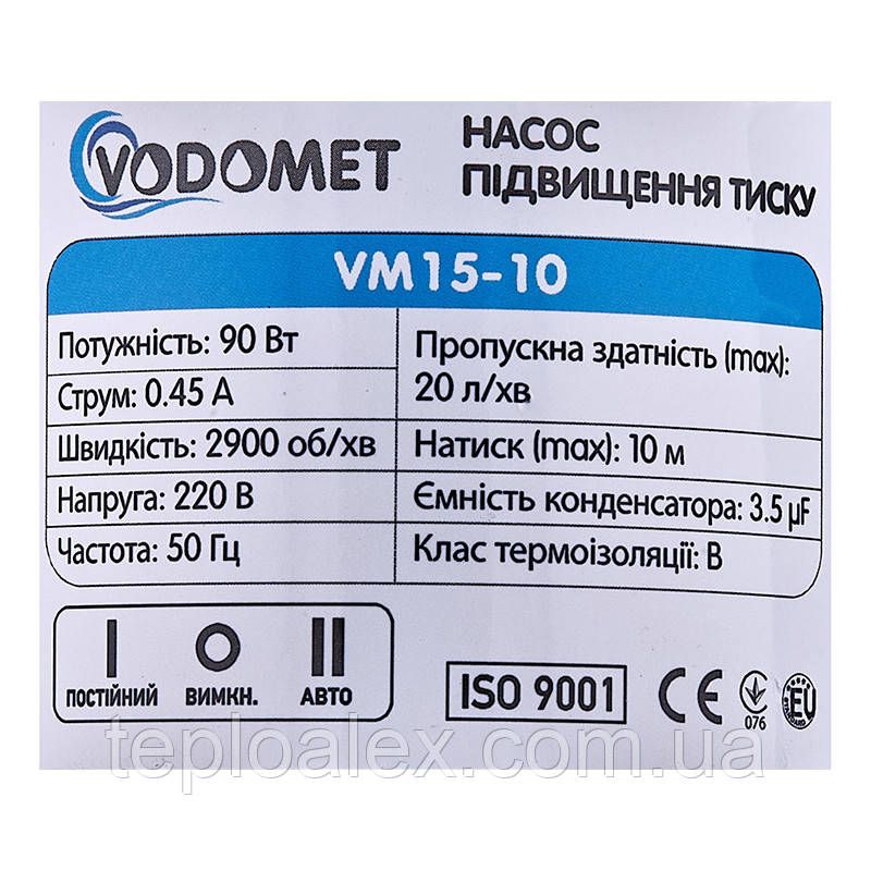 Водяний насос Vodomet VM15-10 Lider Euroaqua, мідна обмотка
