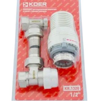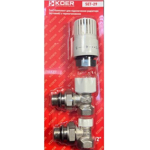 Комплект для радіатора підключення 1/2'' (кутовий) з термоголовкою KOER (Чехія)