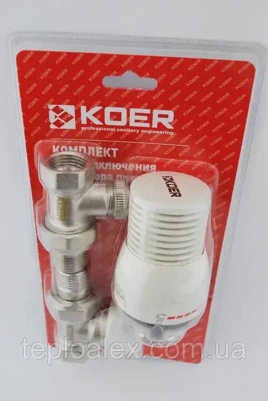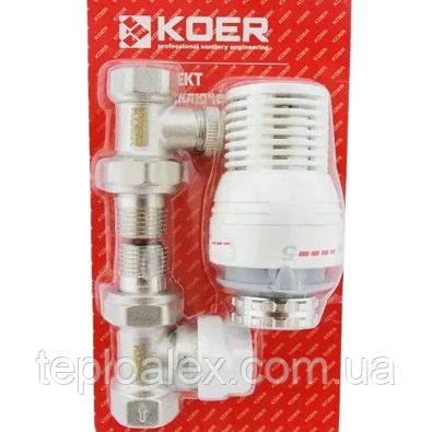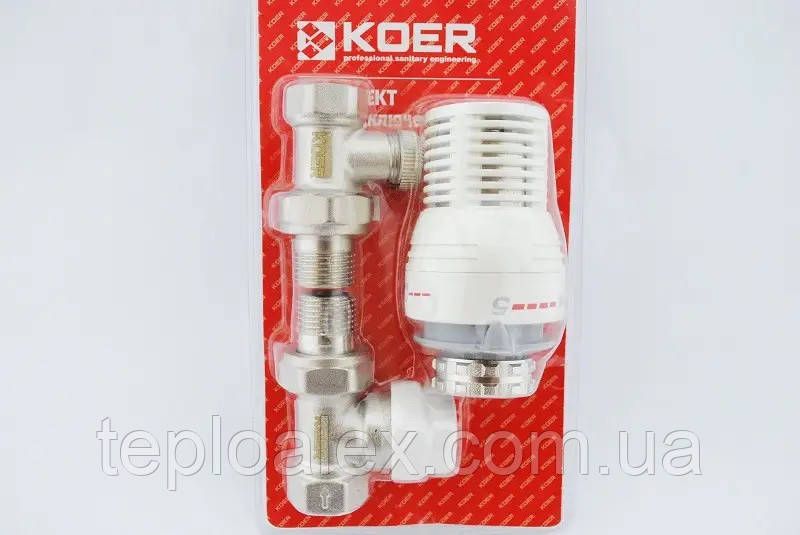 Радіаторний комплект підключення 1/2'' KOER (прямий, Чехія) з термоголовкою