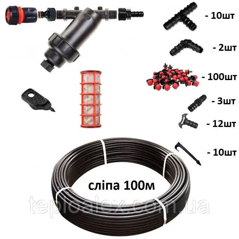 Набір крапельного поливу з трубкою 100м Комплект крапельного зрошення крапельний полив
