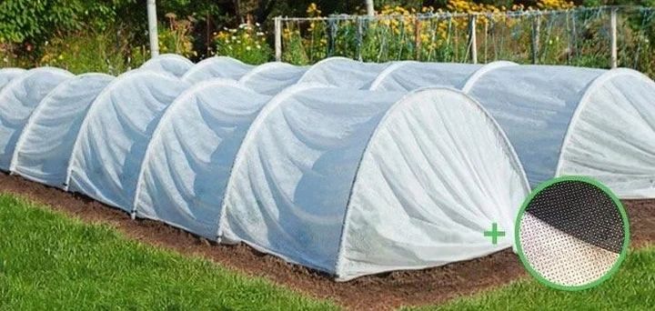 Щільність агроволокна відповідає заявленій 50г/м² Парники "Agreen" виробляються з якісного польського агроволокна (спанбонда). Агропарники "Agreen" славляться насамперед своєю якістю. Конструкція парника проста, але надійна, тому зібрати його самостійно абсолютно не складно. Дуги парника легко вставляються в землю, а кліпси та кілочки роблять мінітеплицю стійкою до вітру й опадів. Високоякісне агроволокно польського виробництва може слугувати понад 10 років. Після закінчення використання парника його необхідно очистити від великого сміття, за потреби агроволокно випрати в пральній машині, щоб мав вигляд як новий. Дуги парника виготовлені зі спеціальної пластмаси з добавками, які захищають від руйнування сонячними променями та ультрафіолетом є міцними й водночас гнучкими й еластичними. Для чого використовується парник з агроволокна: Він використовується для захисту від заморозків до -7 градусів (залежно від щільності агроволокна); Парник захищає рослини від літнього палючого сонця, водночас пропускаючи до 93% сонячного світла; Мінітеплиця утримує вологу всередині парника, водночас пропускає дощову воду; Захищає від жуків, птахів та інших шкідників. Комплектація: Полотно (агроволокно), Кілочки, Скоби, Дуги. Парники з агроволокна мають низку переваг пришвидшують зростання саджанців зберігають розсаду до -7 г. пропускають до 93% сонячного світла не затримують повітря і вологу запобігає появі шкідників не гниє, стійкий до кислот і добрив захищає від снігу та граду легко збирати та розбирати придатний для прання в пральній машині еластичні стійкі до УФ-променів дуги ударостійкі кілочки міцна фіксувальна кліпса