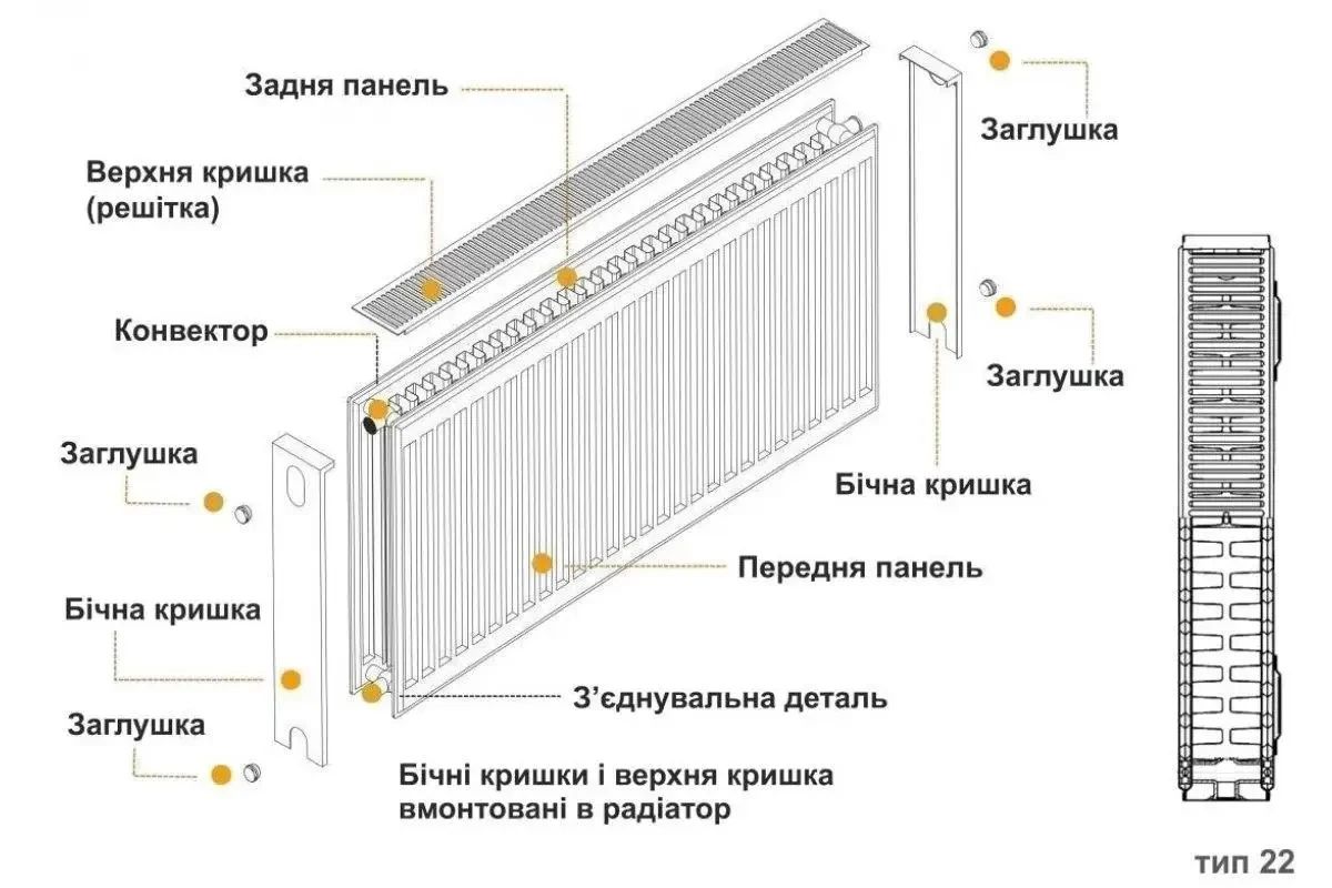Сталевий радіатор 600x500 22тип бокове підключення панельний EUROPRODUCT батарея панельна стальна