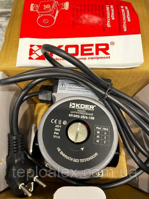 Насос для циркуляції опалення KOER KP.GRS 25/4-130 (Чехія) з мідною обмоткою