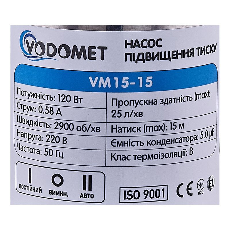Насос підвищення тиску на 1,5 атмосфери мідна обмотка Vodomet VM-15-15 Lider 15WB-14 Euroaqua