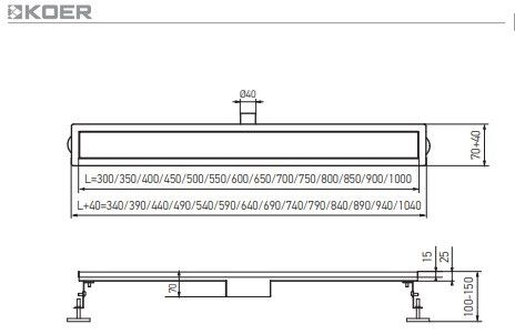 Трап душовий лінійний із нержавіючої сталі KOER з комбінованим затвором призначений для швидкого та ефективного відведення великого об’єму води. Пропускна здатність до 30 л води за хвилину. Регульована висота жолоба. Індивідуально регульовані ніжки забезпечують безпроблемну установку навіть у тих випадках, коли ви стикаєтеся зі значними нерівностями в різних частинах монтажної поверхні. Ухил внутрішньої частини корпусу жолоба. Нове рішення внутрішнього ухилу, який забезпечує максимальний стік води. Водночас стік води полегшує мануальне чищення. Упаковка. Всі трапи пакуються в прозорий пластиковий блістер, що надійно захищає товар під час транспортування та зберігання. Комбіновані затвори сухий/мокрий: Решітки виготовлені з нержавіючої сталі SUS 304, яка характеризується стійкістю до корозії, миючих засобів та механічних пошкоджень. Усередині знаходяться фільтри, які не пропускають у каналізацію жорсткі частинки. Решітка та фільтри знімаються, що дозволяє легко почистити виріб. Бічні борти в душовому трапі збільшують його герметичність і запобігають просочуванню води під нього. Душовий трап обладнаний двома типами затворів, що запобігають попаданню сторонніх запахів у приміщення. Регулювання за висотою душового трапу робить його універсальним. У комплекті: • Водовідвідний жолоб • Решітка • Гідроізоляційна стрічка, що відповідає жолобу • Комбінований гідрозатвор SMART з двома відсіками • Опорні ноги • Монтажний гачок