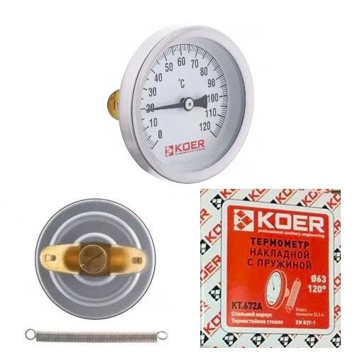 Датчик температури на котел KOER (Чехія) Накладний термометр з пружиною для котла на трубу системи опалення