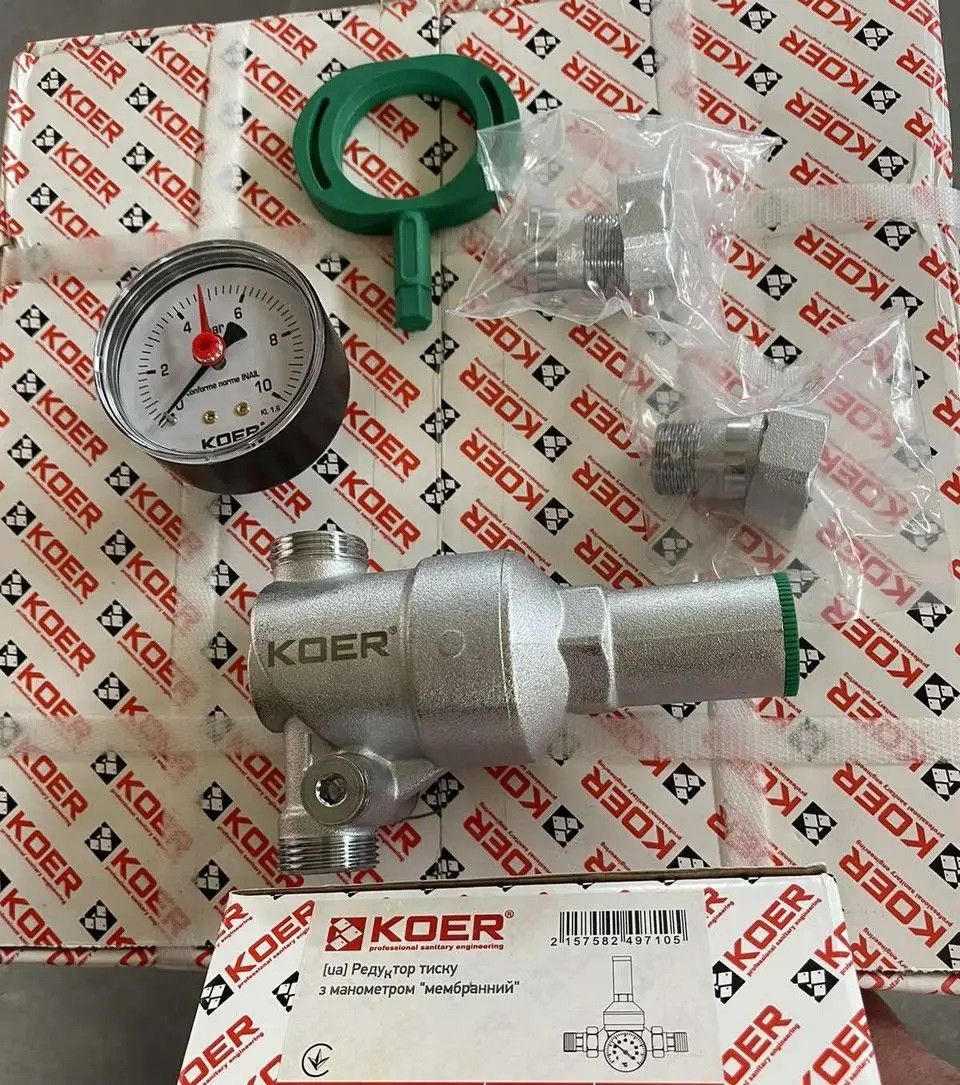 Мембранний редуктор тиску для води KOER з манометром 1/2" (Чехія)