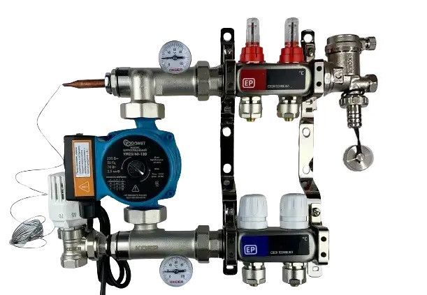 Колектор в зборі з насосом на 2 контури для теплої підлоги мідна обмотка гребінка 2 виходи тепла підлога koer