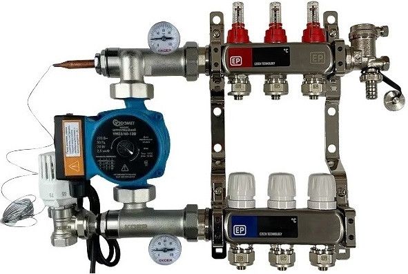 Колектор в зборі з насосом на 3 контури для теплої підлоги мідна обмотка гребінка 3 виходи тепла підлога koer