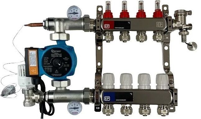 Колектор в зборі з насосом на 4 контури для теплої підлоги мідна обмотка гребінка 4 виходи тепла підлога koer