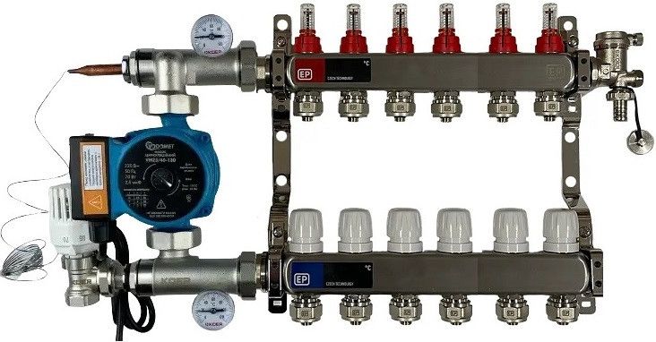 Колектор в зборі з насосом на 6 контурів для теплої підлоги мідна обмотка гребінка 6 виходів тепла підлога koer
