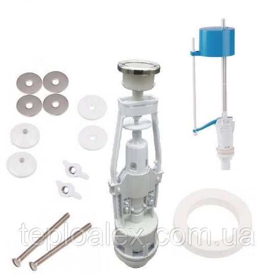 Комплект арматури в унітаз зливна стойка кнопочна та клапан подачі води знизу бачка унітазу нижній клапан низ