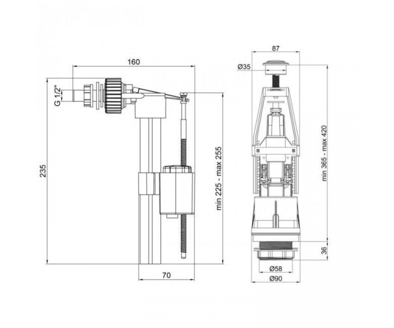 Комплект запчастин для бачка унітазу 2-х кнопочна арматура 2-режимна зливна система болти, клапан боковий