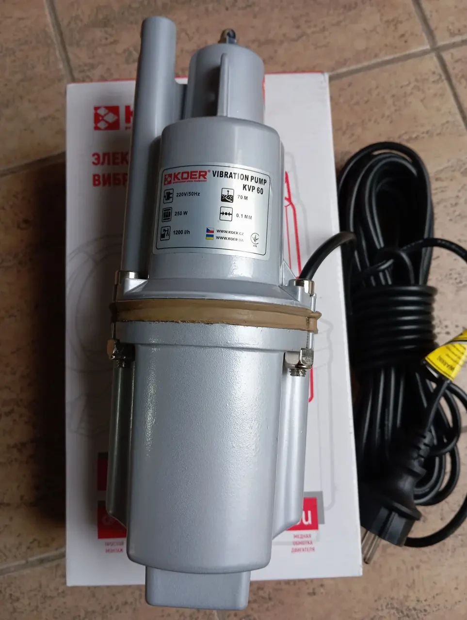 Вібраційний насос з мідною обмоткою Koer KVP 60 для свердловини колодязя одноклапанний з верхнім забором