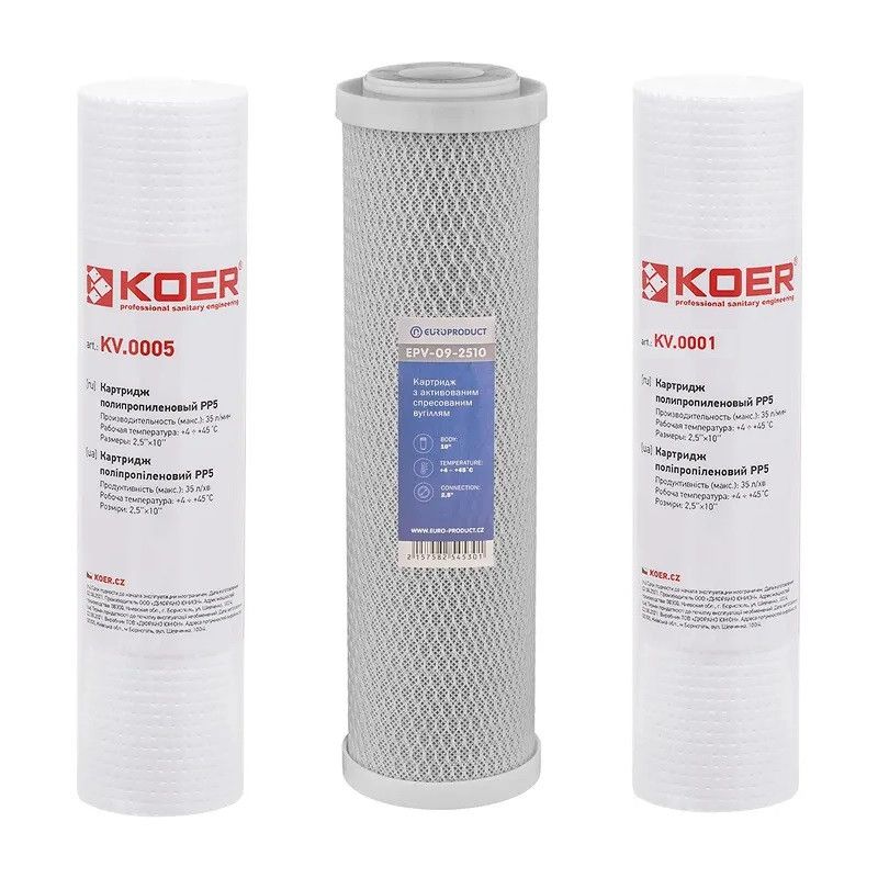 Набір картриджів для осмосу Комплект картриджів 1-2-3 до осмосу фільтри для системи зворотнього осмосу KOER EUROPRODUCT