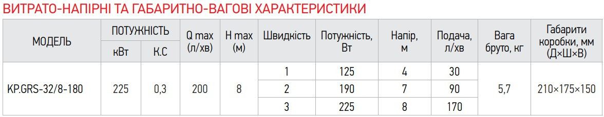 Насос циркуляційнний GRS 32 / 8-180 KOER 32-80 180 мідна обмотка 8 метрів потужний