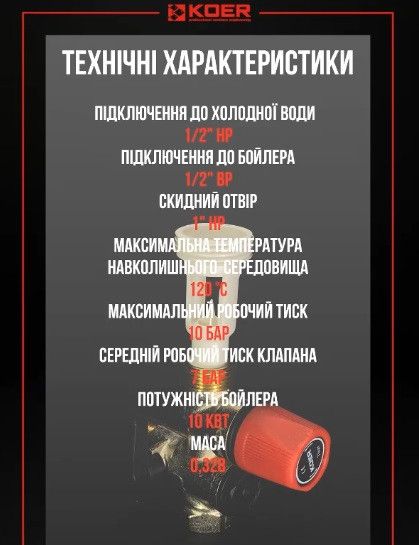 Група безпеки для бойлера KOER — це надійний і високотехнологічний пристрій, розроблений для забезпечення максимальної безпеки та стабільної роботи бойлера. Спеціально сконструйована для роботи при тиску до 7 бар, ця група безпеки з запобіжним аварійним клапаном гарантує своєчасний скид надлишкового тиску, запобігаючи аварійним ситуаціям. Ключові характеристики: Висока якість виготовлення. Вироблена за сучасними технологіями з використанням якісних матеріалів, що забезпечує тривалий термін служби та надійну роботу навіть при інтенсивному використанні. Надійний запобіжний аварійний клапан. Клапан миттєво реагує на надмірне підвищення тиску, оперативно скидаючи його та захищаючи бойлер від можливих пошкоджень. Сучасний дизайн та зручність монтажу. Розрахована для бойлерів з підключенням 1/2", що дозволяє легко інтегрувати пристрій у систему без зайвих ускладнень. Відповідність європейським стандартам. Продукція KOER (Чехія) відзначається високим рівнем якості та безпеки відповідно до міжнародних норм. Переваги продукту: Безпека та надійність. Використання групи безпеки дозволяє мінімізувати ризики аварій завдяки оперативній реакції та ефективному захисту обладнання. Простота обслуговування. Завдяки зручній конструкції обслуговування та профілактичні огляди виконуються швидко та без зайвих зусиль. Ефективний захист бойлера. Пристрій забезпечує надійний бар’єр, який захищає бойлер і систему в цілому від пошкоджень, подовжуючи термін служби обладнання. Обираючи групу безпеки для бойлера KOER, ви отримуєте якісне та надійне рішення, яке забезпечить безпечну та довговічну роботу вашої системи гарячого водопостачання.