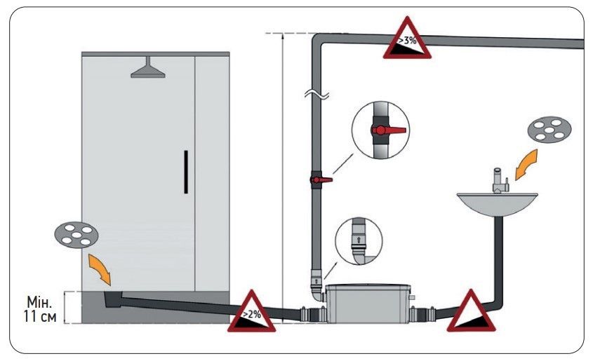 Каналізаційна установка – це компактне та ефективне рішення для відведення стічних вод у тих місцях, де природне відведення неможливе або ускладнене. Установки цього типу дозволяють підключати сантехнічні прилади (раковини, душові кабіни, пральні чи посудомийні машини) навіть на значній відстані від головного каналізаційного стояка чи на нижчих рівнях, таких як підвали. Основні характеристики: Продуктивність: швидко і безперебійно перекачує стоки, забезпечуючи надійну роботу. Компактність: Займає мінімум місця, що дозволяє легко встановлювати установку навіть у тісних приміщеннях. Зручність монтажу: Простота підключення до трубопроводів робить установку придатною для використання в будь-якому типі будівель. Низький рівень шуму: Завдяки сучасним технологіям роботи мотору, пристрій працює майже безшумно. Надійність: Виготовлено з міцних і зносостійких матеріалів, що гарантує довговічність. Автоматичне управління: Установка активується автоматично при появі стічних вод. Застосування: Каналізаційну установка - це ідеальне рішення для організації каналізації у приватних будинках, офісах, кафе, готелях та інших приміщеннях, де стандартна каналізаційна система недоступна. Обравши каналізаційну установку, ви отримуєте надійний пристрій, який спрощує побут і забезпечує комфортну експлуатацію сантехнічного обладнання. Технічні характеристики: Потужність (Вт): 200 Матеріал виробу: Технополімер Матеріал вала двигуна: Нержавіюча сталь AISI 304 Матеріал робочого колеса: Технополімер Матеріал обмотки статора: Мідь Режим роботи: Повторно-короткочасний Напруга мережі (V): 220-240 Продуктивність (л/хв): 100 Частота струму (Гц): 50 Захист від перегріву (вбудований датчик перегріву): Так Клас захисту корпусів електронного обладнання: IPX7 Рівень шуму (дБ): 40 Вхідний отвір: 2x40 мм; Вихідний отвір: 23/28 мм Максимальна температура робочої рідини (°C): 75 Горизонтальний напір: 70 м; Вертикальний напір: 7 м Комплектація: Гумові ніжки, ніжки (2 шт.) Зворотний клапан (1 шт.) Бічна кришка вхідного отвору (1 шт.) З'єднувальна труба бокового входу (2 шт.) Хомут Ø20-40 (2 шт.) Хомут Ø32-50 (4 шт.) Гвинт (2 шт.)