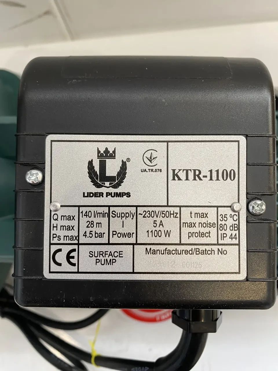 Центробіжний насос з мідною обмоткою Lider KTR 1100 Вт безконтактний типу насос БЦН 1,1 кВт поверхневий