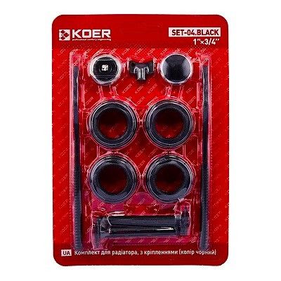 Чорний комплект для підключення радіатора 3/4 з кріпленнями. Набір 3/4 баратейний з крюками чорного кольору
