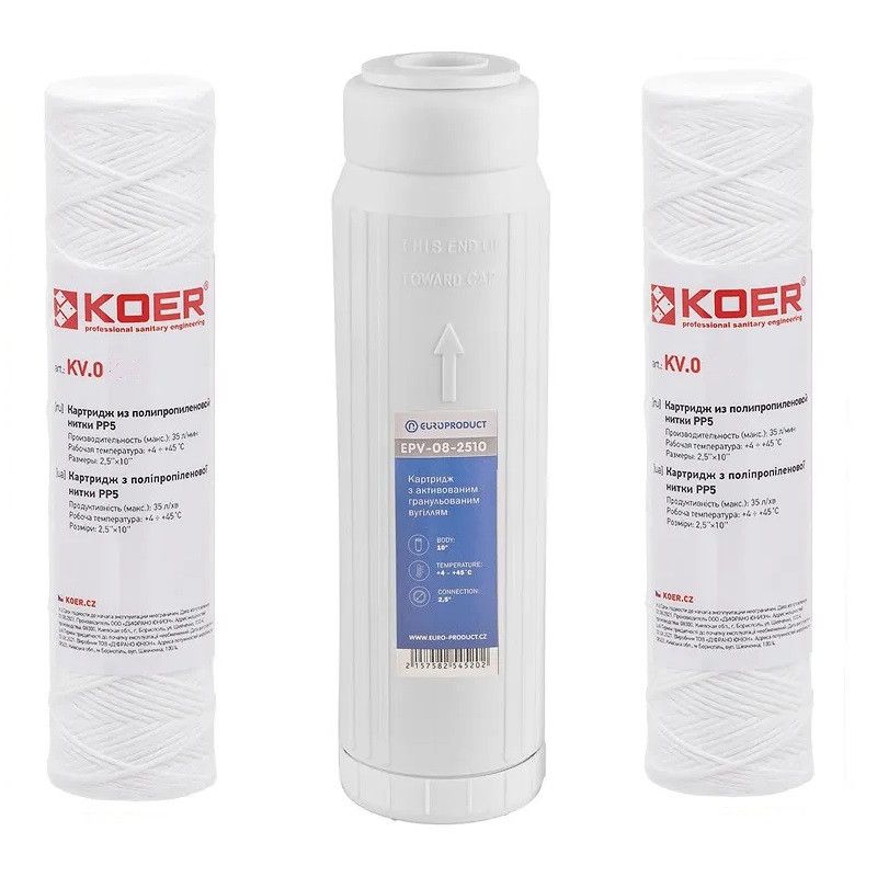 Набір картриджів для осмосу Комплект картриджів 1-2-3 до осмосу фільтри для системи зворотнього осмосу KOER EUROPRODUCT
