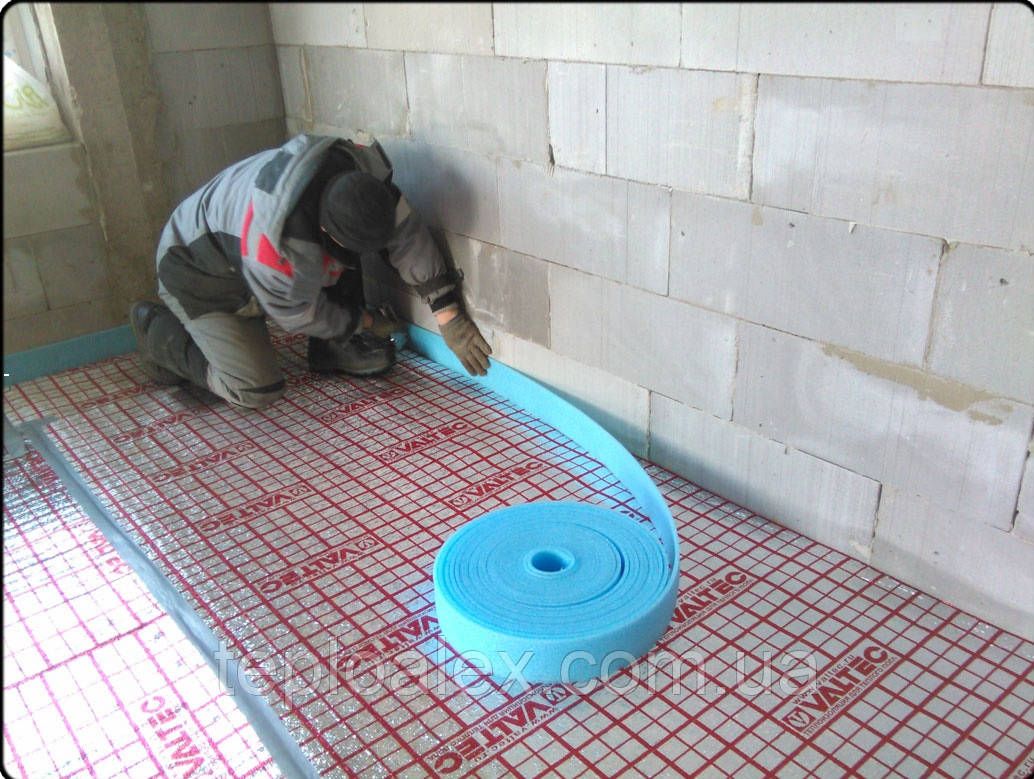 Демпферна стрічка укладається на висоту, на 2 - 3 см більше планованої висоти бетонної стяжки. Надлишки видаляються після укладання керамічної плитки або іншого підлогового покриття.