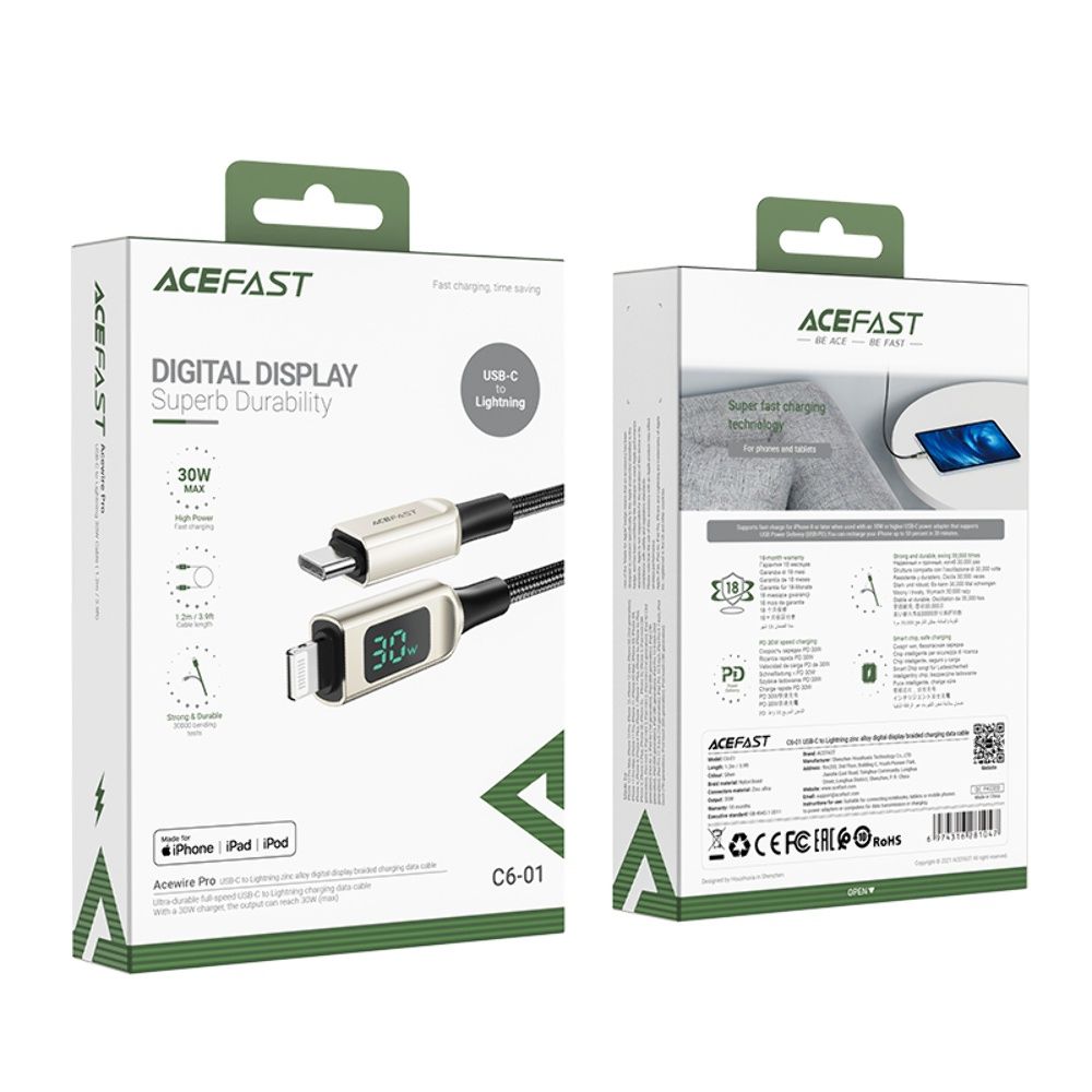 Кабель USB Acefast C6-01 з дисплеєм, Type-C to Lightning, PD 30W, 1.2m, чорний