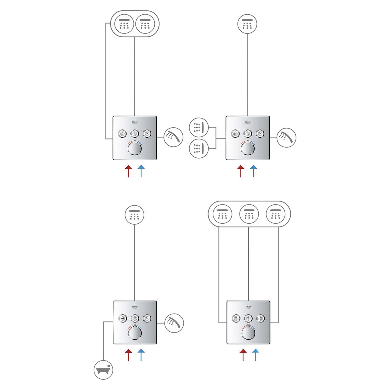 — Інноваційна технологія GROHE SmartControl® для вибору режиму струменя й контролю напору води.