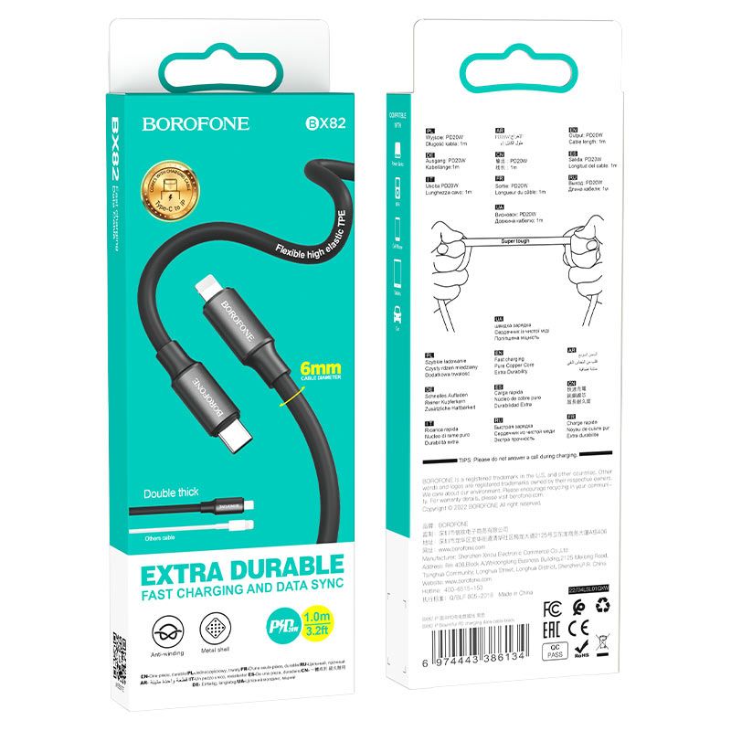 Кабель USB Borofone BX82, Type-C to Lightning, PD20W, 1m, чорний
