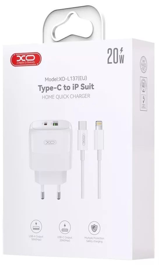 ΠΠ΅ΡΠ΅ΠΆΠ΅Π²ΠΈΠΉ Π·Π°ΡΡΠ΄Π½ΠΈΠΉ ΠΏΡΠΈΡΡΡΡΠΉ XO L137, 1Type-C/1USB, PD/QC 20W+Type-C to Lightning, ΠΡΠ»ΠΈΠΉ