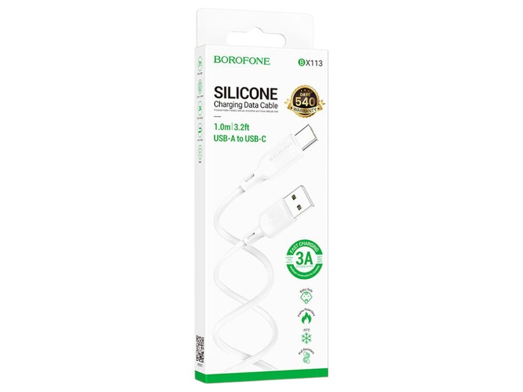 Кабель USB Borofone BX113, Silicone, Type-C, 3A, 1m, Білий