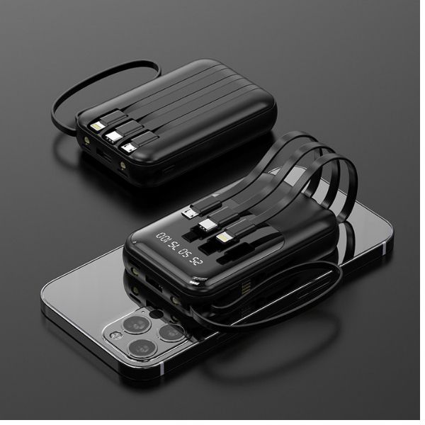 Ємність 20000 mAh і потужність до 66W дозволяють заряджати смартфони, планшети, навушники та інші гаджети максимально ефективно. Завдяки вбудованим кабелям (USB-C, Lightning, Micro-USB та USB-A) вам не потрібно носити із собою додаткові дроти.