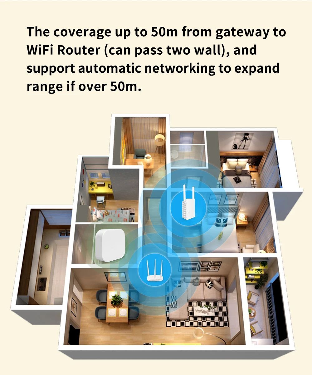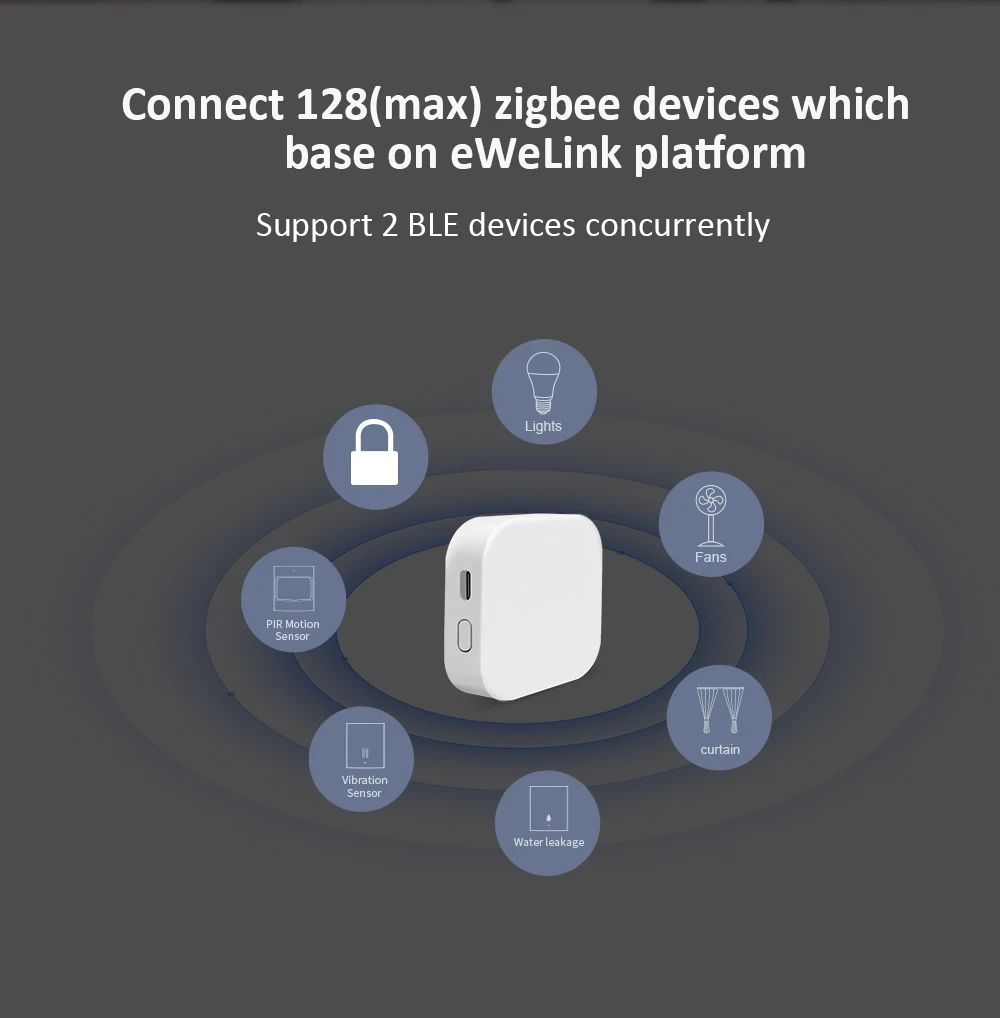 - Цей шлюз поєднує всі Zigbee-пристрої в єдину екосистему, дозволяючи керувати датчиками руху, освітленням, шторами, вентиляторами, сигналізацією, датчиками протікання води, вібрації та іншими пристроями з однієї програми.