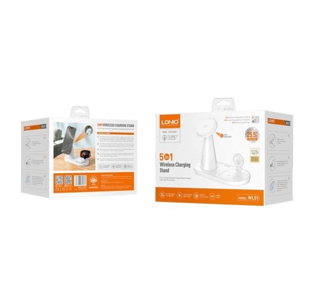 Бездротовий зарядний пристрій LDNIO WL01 — це багатофункціональне рішення для одночасного заряджання смартфона, Apple Watch і TWS-навушників, а також зручна магнітна підставка та м'який LED-нічник. Цей пристрій створено для максимального комфорту, економії простору та безпечної експлуатації в домашніх та офісних умовах. Він дозволяє тримати всі основні гаджети в одному місці, позбавляючи зайвих кабелів та адаптерів.