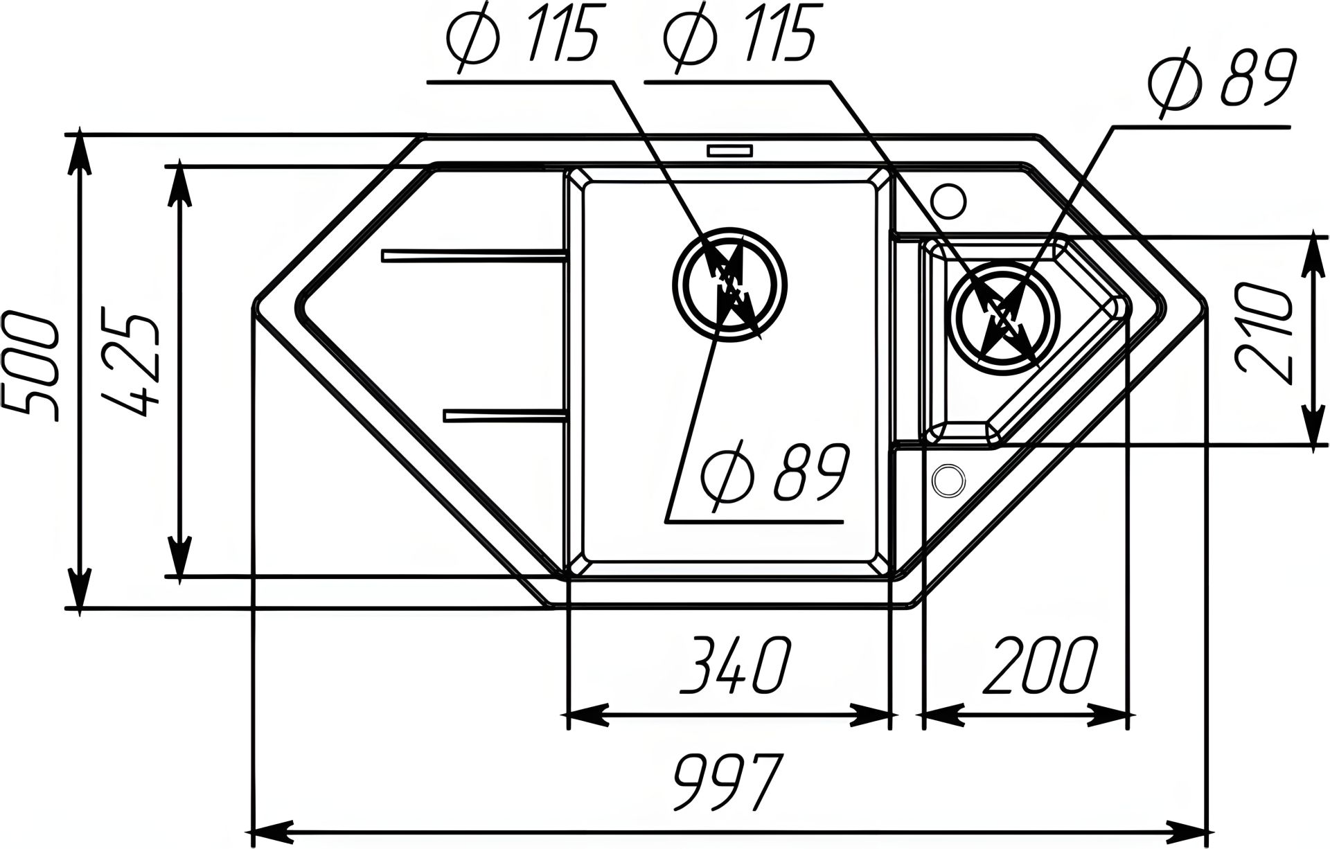Розміри мийки – 997х497х205 мм, вага – 12,6 кг, сифон – євросифон з широкою горловиною, 110 мм.